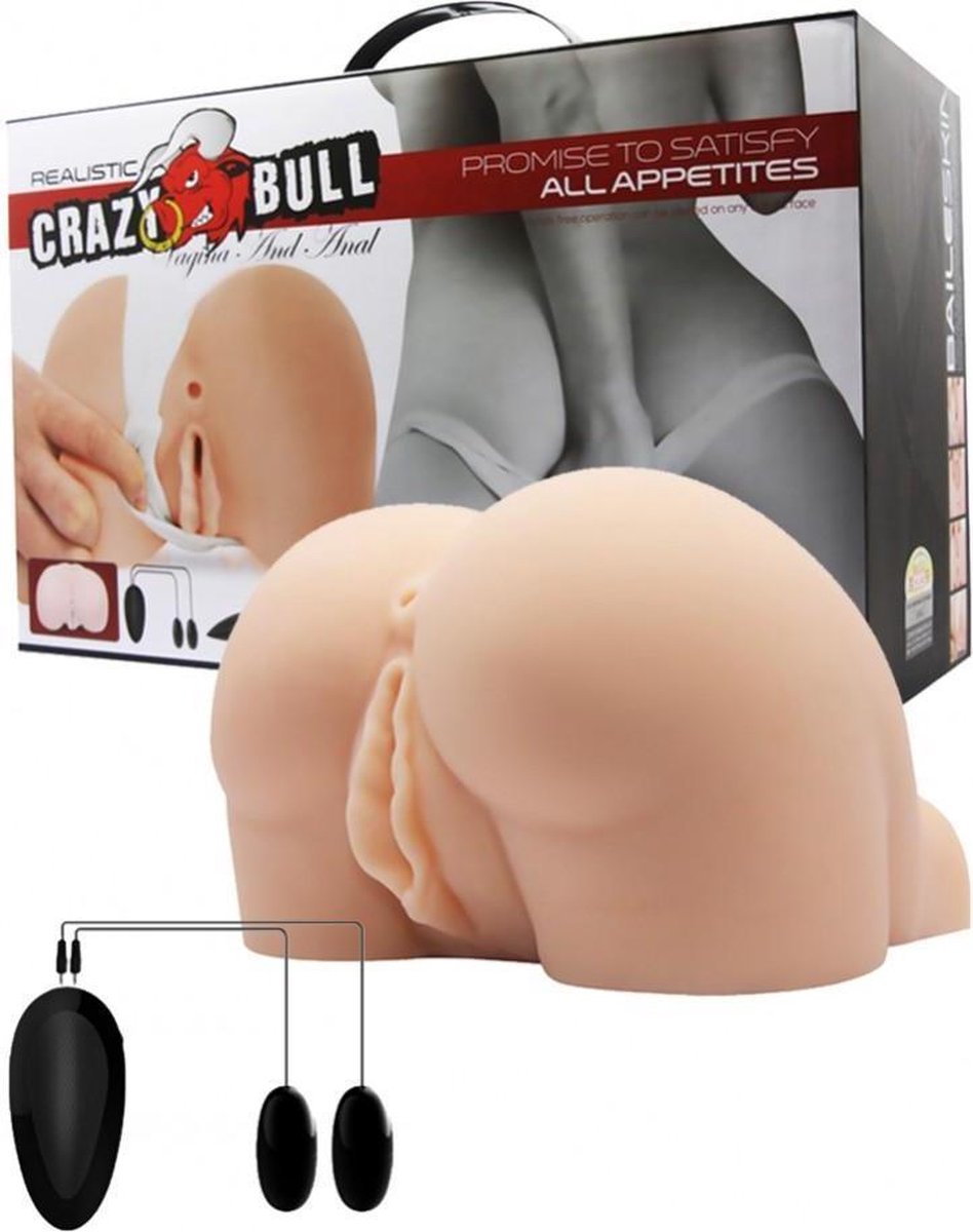 De Crazy Bull Vibrerende Kut & Kont is gemaakt van zachte siliconen die aanvoelen als huid en aanvoelen als een echte kut en kont. Hij absorbeert zelfs snel lichaamswarmte, dus smeer er glijmiddel op en neuk deze warme, natte gaatjes.