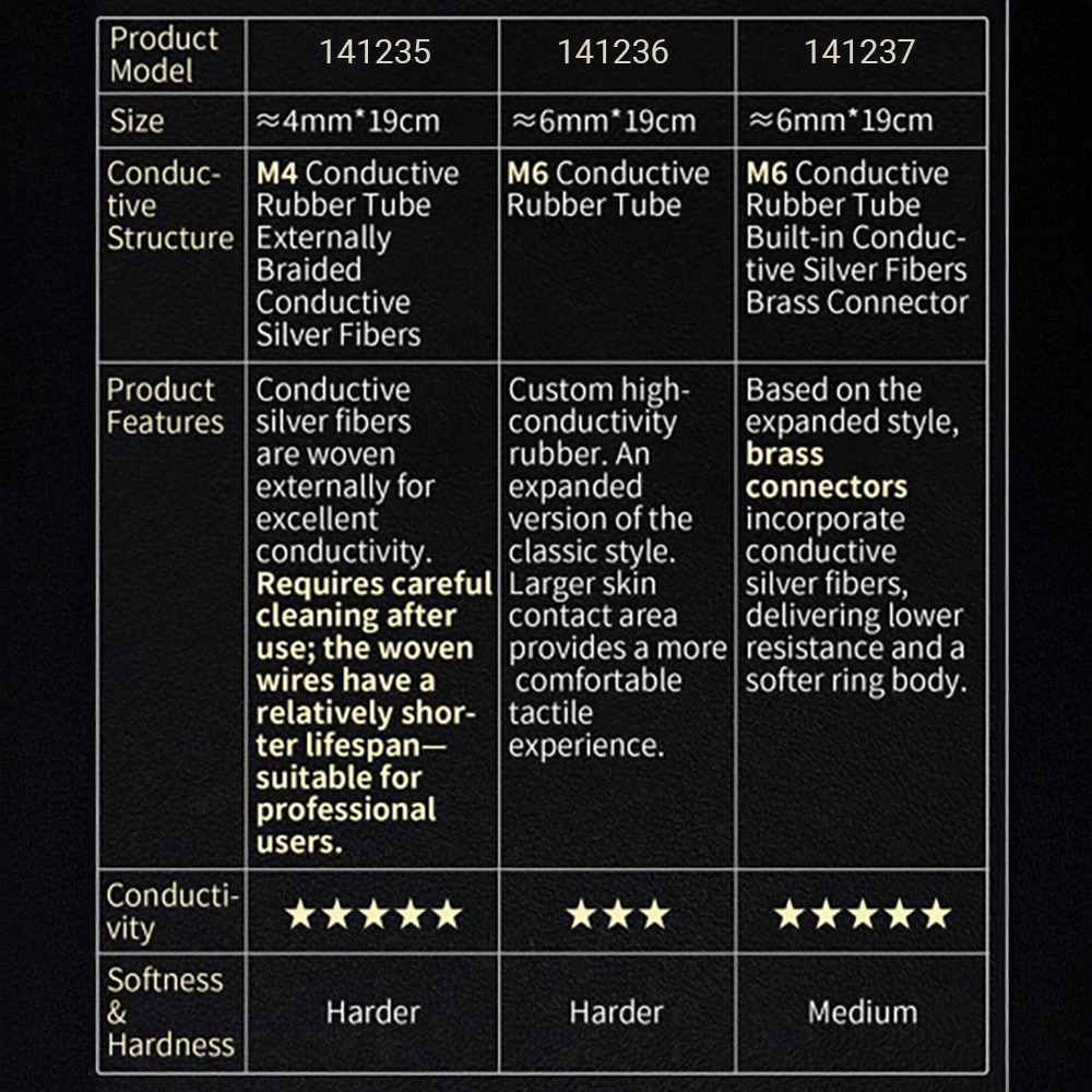Geleidend rubber heeft doorgaans een relatief hoge weerstand, wat kan resulteren in een zwakke stimulatie tijdens gebruik. Om dit probleem op te lossen, heeft Dungeon Lab een speciaal rubbersubstraat met lage weerstand ontwikkeld en dit geïntegreerd met een geleidende zilveren kern. Dit verlaagt de weerstand van enkele honderden ohms tot slechts enkele tientallen ohms.
